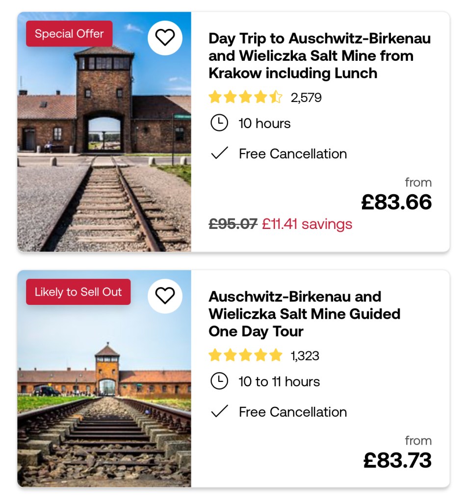 https://www.viator.com/tours/Krakow/Day-Trip-to-Auschwitz-Birkenau-and-Wieliczka-Salt-Mine-from-Krakow-including-Lunch/d529-20231P1