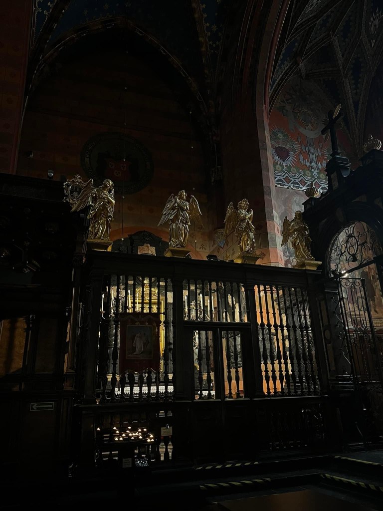 • St Mary’s Basilica Kraków; A brick gothic church across from the main market square.